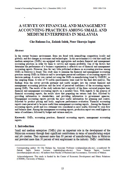 • A Survey On Financial and Management Accounting Practices Among Small and Medium Enterprises in Malaysia