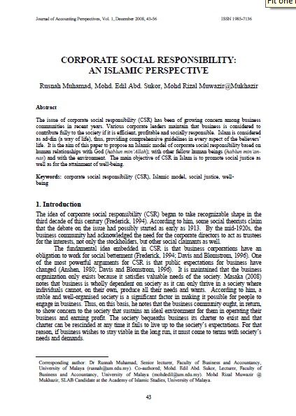 • Corporate Social Responsibility: An Islamic Perspective