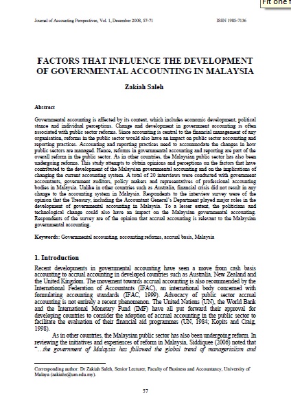 • Factors That Influence the Development of Governmental Accounting in Malaysia