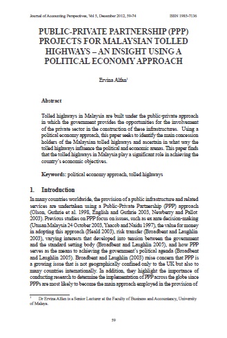• Public-Private Partnership (PPP) Projects for Malaysian Tolled Highways – An Insight using a Political Economy Approach